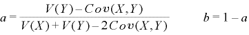 となり、この”a”と”b”がV(aX+bY)が最小となりうるV(X)とV(Y)の組み込む比率を意味します。