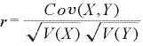 ここでのV(X)、V(Y)、Cov(X,Y)の数式の定義は以下になります。